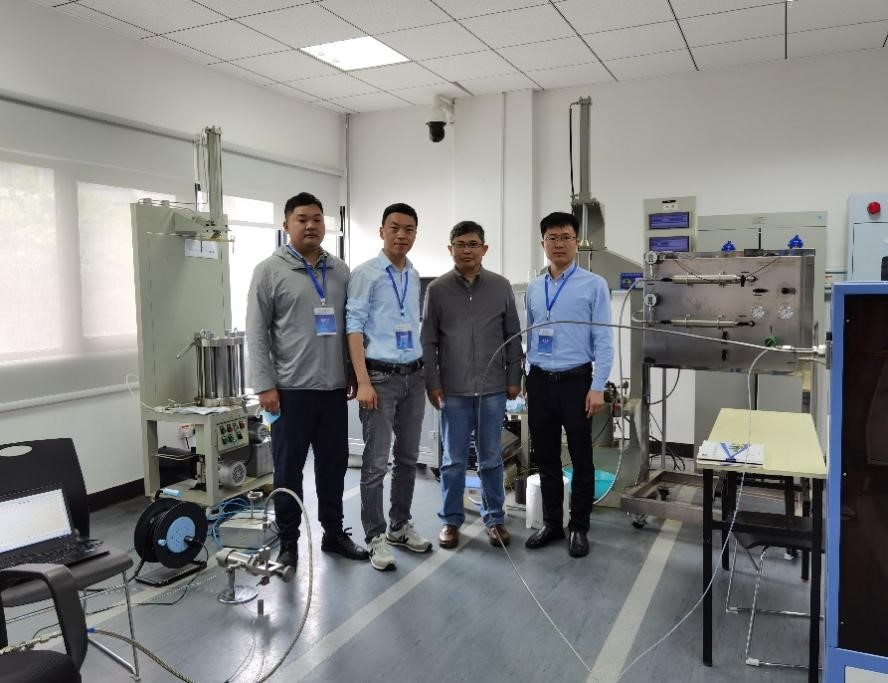 会议间期,王刚一行参观了中国矿业大学深部岩土力学与地下工程国家重点实验室,中国矿业大学副教授刘江峰陪同参观,从研究方向、装备研发、成果落地等方面对实验室取得的突破性进展进行了介绍,并详细讲解了多场多相超低渗测试系统、高温高压岩石动态三轴仪、温度梯度冻土空心扭剪实验系统、地下结构大型直剪试验系统、千米表土冻结法凿井模拟试验系统筹先进试验装备。