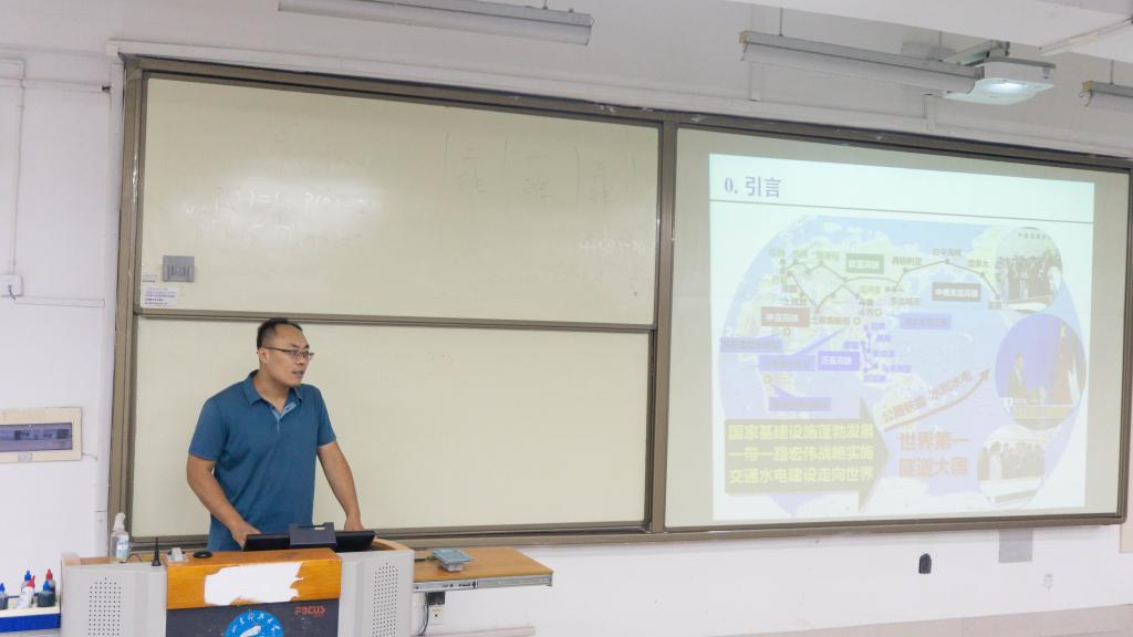 讲座伊始,贺鹏从交叉学科的角度,阐述了当前地下空间工程灾害防控技术的发展趋势以及共性导向、学科育人的发展理念。接着,贺鹏从新方法老问题、新问题老方法及新问题新方法三个角度,以学院老师所承担课题与工程现场为案例,详细剖析了交叉学科在科研工作中的具体应用。其中,“岩体结构信息智能解译与云端分级交互系统”“岩土建构筑物远程智能监测装备”“TBM机械掘进高压水射流破岩技术与装备”等前沿热点鲜活地展现了学科交叉的诸多可行性与优越性。同时,贺鹏就学科的交叉融通、结合传感器、物联网、大数据、云计算等一大批新技术,分别从精细探测、智能感知与智慧决策等角度,梳理了地下空间开发利用中行业领域诸多卡脖子难题。最后,贺鹏鼓励新生们尽早建立科研理论知识体系,掌握数值软件手段,抓住工程实践的机会,积极参与学术会议。