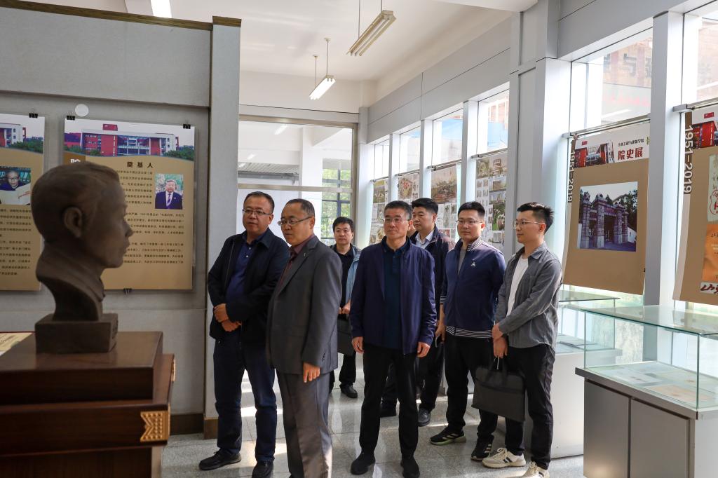 一行人先后参观了williamhill英国威廉希尔院史馆、实验中心。在院史馆,王崇革详细介绍了williamhill英国威廉希尔的发展历程、学科建设以及杰出校友等方面的情况。在实验中心,李为腾详细介绍了各个实验区域的功能和各个实验设备用途。