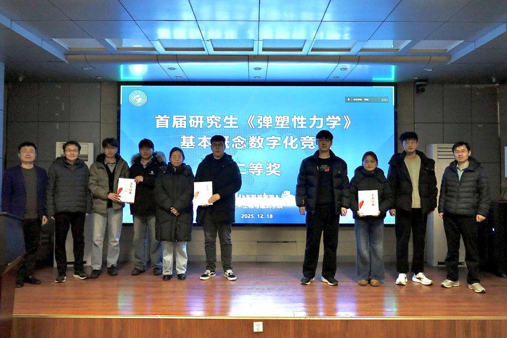 李为腾首先介绍了竞赛的举办初衷与具体规则。随后,各参赛小组通过抽签方式确定了参赛顺序。作品展示与专家质询答辩过程中,各小组采用动画模拟、数值计算、幻灯片演示等数字化呈现形式,将抽象的弹塑性力学基本概念与具体工程案例巧妙结合,深入浅出地阐释了课程核心概念的内涵要义、推导逻辑及实际应用场景,同时也充分展现了参赛选手的理论功底与数字化工具应用能力。答辩结束后,随即进行专家打分,当场公布成绩,最终评选出特等奖1项、一等奖2项、二等奖3项和三等奖若干。本次竞赛充分展示了学院研究生的基础技术水平和综合素质风采,进一步激发了同学们深耕专业、投身科研的热情。