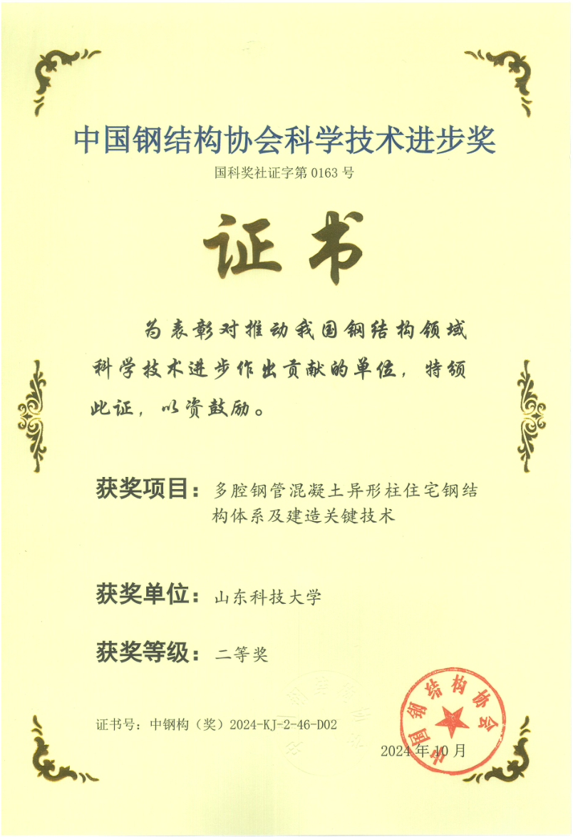 近日,中国钢结构协会成立40周年大会暨2024中国钢结构大会在北京隆重召开,会上揭晓了2024年度中国钢结构协会科学技术奖评选结果。威廉希尔官网王来教授牵头的“多腔钢管混凝土异形柱住宅钢结构体系及建造关键技术”项目荣获科学技术进步奖二等奖(第二完成单位)。
