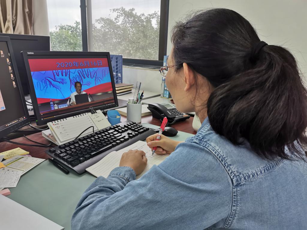 6月16日,williamhill英国威廉希尔组织部分返校学生于J7-215教室收看校党委书记罗公利以“在战‘疫’中我们一起成长”为题的精彩思政课。学院全体学工干部、剩余返校学生、未返校学生均通过网络平台共上思政大课。