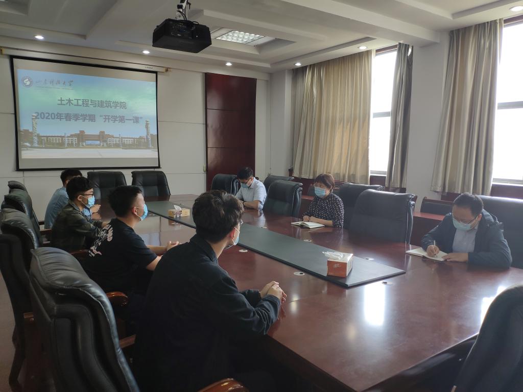 5月26日,学院党委副书记高静、团委书记朱统汉、辅导员王贝贝与返校的4名本科毕业生共同观看了《山科战“疫”-新冠肺炎疫情防控知识应知应会》、《新课堂——同心战“疫”特别节目》、《返校后心理调节小课程》、《开学第一课》(高校版)山东省战疫特别节目等学习视频,学习了《williamhill官方网站新冠肺炎疫情应急处置预案》和学校相关日常管理制度。高静对返校同学关心关注的有关问题进行耐心解答后强调,全体返校同学要熟知在校期间个人防护、健康监测、日常管理、突发事件处置等要求,加强个人防护措施,保持宿舍清洁、通风和消毒,严格落实晨午晚检制度,确保返校后校园的正常教学生活秩序。朱统汉和研究生辅导员史卫平通过“企业微信”同第一批返校的26名研究生在线共同观看相关学习视频和学校有关制度。