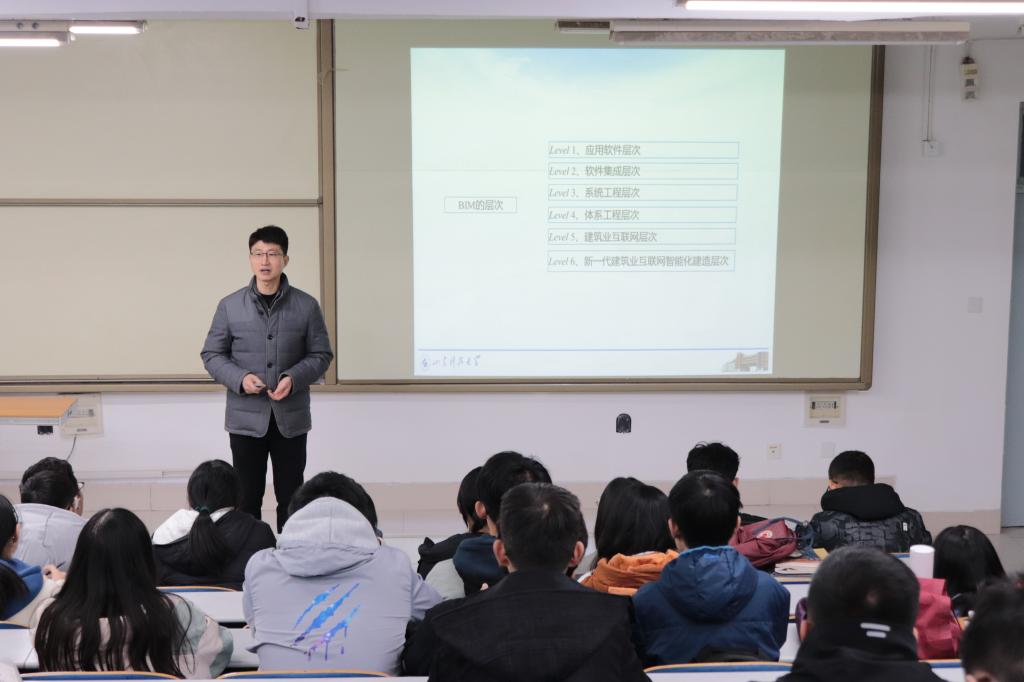 宣讲会期间,都浩就BIM的简明定义、核心思想和发展战略进行系统而全面的讲解。他指出,应尊重版权并鼓励对软件收费,只有这样才能鼓舞软件开发者去开发更加高效的软件。宣讲会末,都浩对BIM行业变革的三个层面、BIM行业数学化的三个阶段进行梳理,幽默风趣的宣讲风格给同学们留下来深刻的印象。宣讲会结束后,都浩与同学们进入讨论答疑环节,针对同学们提出的问题,做出了详细的解答并作出补充。