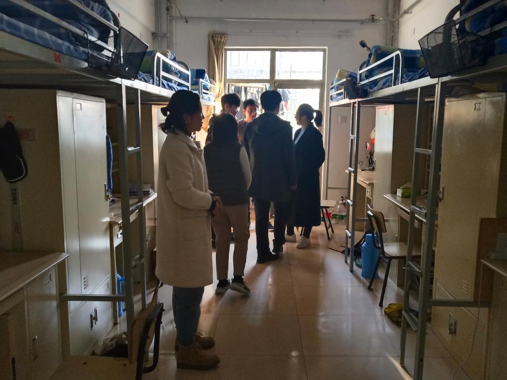本次检查主要排查宿舍内存在的安全隐患,重点检查了宿舍内吸烟、喝酒、私接乱拉电线、使用不正规厂家的电器产品、插座超负荷运行及不安全摆放、存放使用大功率违规电器等问题。针对检查发现的问题,现场提出整改意见,要求及时整改落实,坚决消除安全隐患,对存放酒精炉、电热水壶等违规电器的行为,以及学生离开宿舍仍有电器工作的情况进行登记、没收,同时,也对各宿舍卫生状况进行了检查。各负责老师在检查的同时,也积极关心同学们的学习、就业情况,叮嘱大家要增强安全防范意识,合理安排大学生活,规划美好未来人生。