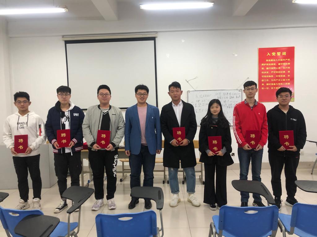 此次会议由刘晶老师主持召开,首先各个助理辅导员就开学以来各个班级的真实情况进行了讨论,各自介绍了自己对应班级的班风、学风、日常工作和生活情况,真实地反映出目前在2019级新生中出现的普遍性问题以及2019级新生的闪光点,小到宿舍卫生、大到班级班风学风建设,在各个助理辅导员的谈话中都有所涉及。其次刘晶老师就全院新生的整体学风、学生干部工作情况进行了点评,并征求了各个助理辅导员对于团委在2019级新生服务与管理工作的意见与建议。会议最后,刘晶老师和刘超老师为2019级新生助理辅导员颁发了聘书。