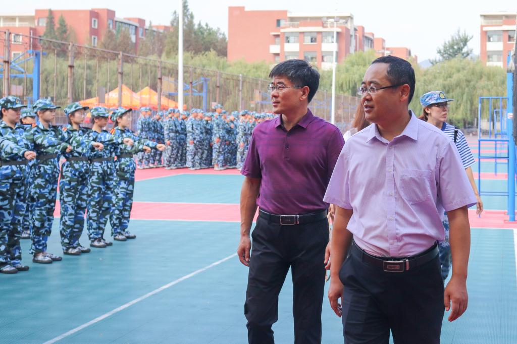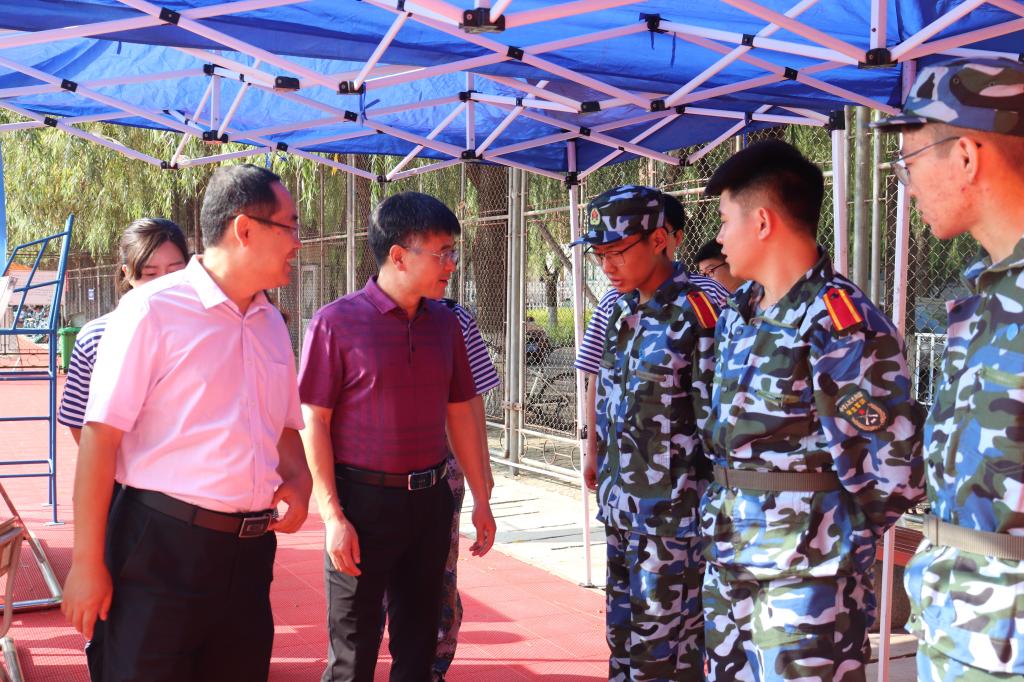 上午,williamhill英国威廉希尔党委副书记(主持工作)宋西路、院长王崇革在团委书记于娜及19级辅导员的陪同下前往训练场地,对新生军训的情况进行了详细了解和指导,对在场工作人员进行了慰问,对因伤无法参训的同学们表示关心,对军训场地布置和宣传工作进行了视察。学院领导还进入训练场地,驻足观看学生们的训练情况,与各位教官进行了交流,对他们的耐心指导和辛苦付出表示了感谢。
