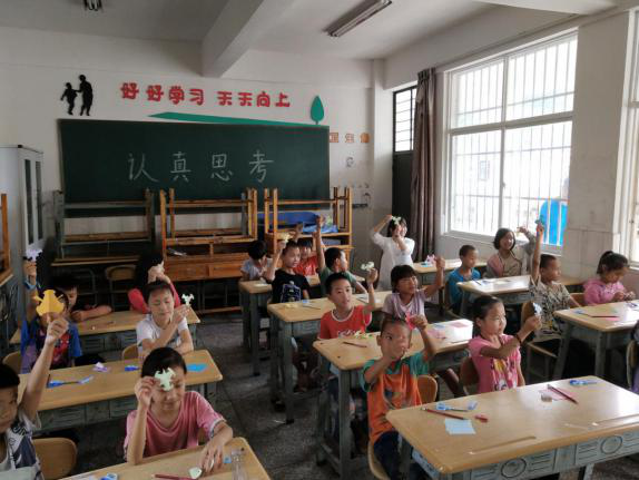 当天晚上,支教队员们与当地学校负责人吴月琼进行了会谈,商讨招收学生年龄阶段、人数、支教队所教授课程、活动开展等事宜。考虑到学生的年龄阶段和接受程度,队员们对课程安排作出了调整,其中主要以绘画课、音乐课、手工课、体育课和安全教育课为主,另外还有趣味语文、趣味数学、趣味英语、数独课、视野拓展课、心理健康课等课程。经过第二天整整一天的宣传,有近50个孩子前来报名,最终,队员们将参加活动的孩子们分成高年级和低年级两个班。七月二十四日,支教正式开始。