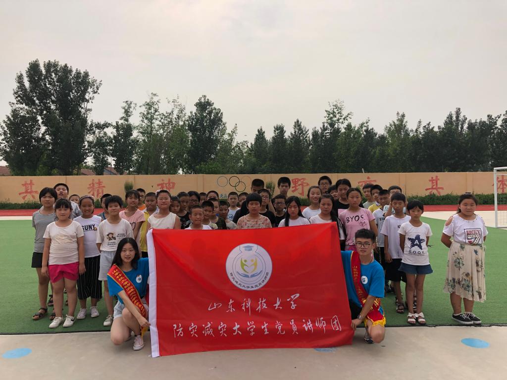 8月1日,williamhill官方网站防灾减灾大学生党员讲师团来到德州市陵城区西李小学与王架小学进行了为期一天的“积极防御灾害,构建和谐校园”的知识主题宣讲以及地震演练,共计160余名当地学校学生代表参与此次宣讲活动。