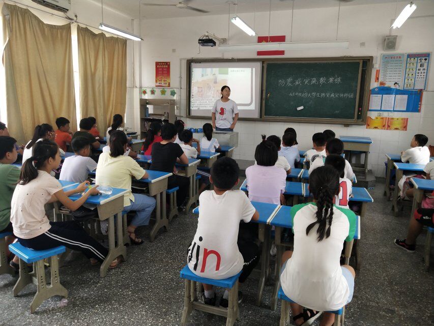 7月31日,williamhill官方网站防灾减灾大学生党员讲师团济宁队在鱼台县第二实验小学进行了以“减灾知识进课堂,安全意识传万家”为主题的防灾减灾宣讲以及地震应急疏散演练,济宁市鱼台县第二实验小学120名学生代表参加了此次活动。