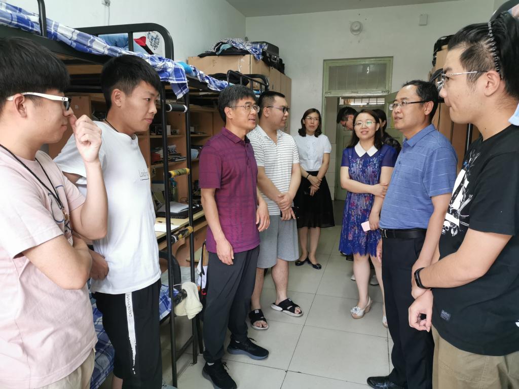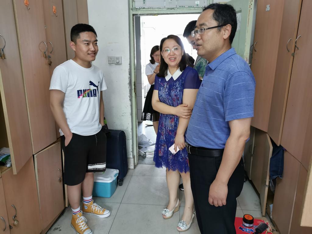 在GB2公寓楼,走进每间毕业生宿舍,学院领导都同毕业生亲切的交谈。他们热情询问每位毕业生的发展情况及离校安排,细心询问同学们近期存在的困难和需要,认真叮嘱离校前的各项注意事项。对于工作的同学,领导们叮嘱他们要俯下身子、踏踏实实的从基层做起;对于深造的同学,领导们鼓励他们在新的平台要继续秉持“惟真求新”的校训,以学习长真知,以实践促发展;对于考研二战的同学,领导们贴心安慰他们,劝解他们要重拾信心,坚持不懈的为梦想奋斗。