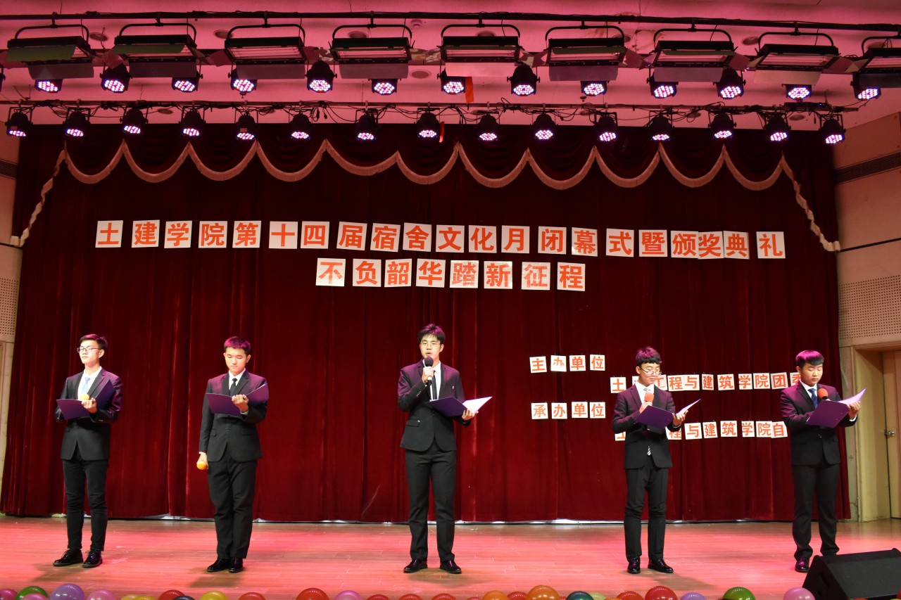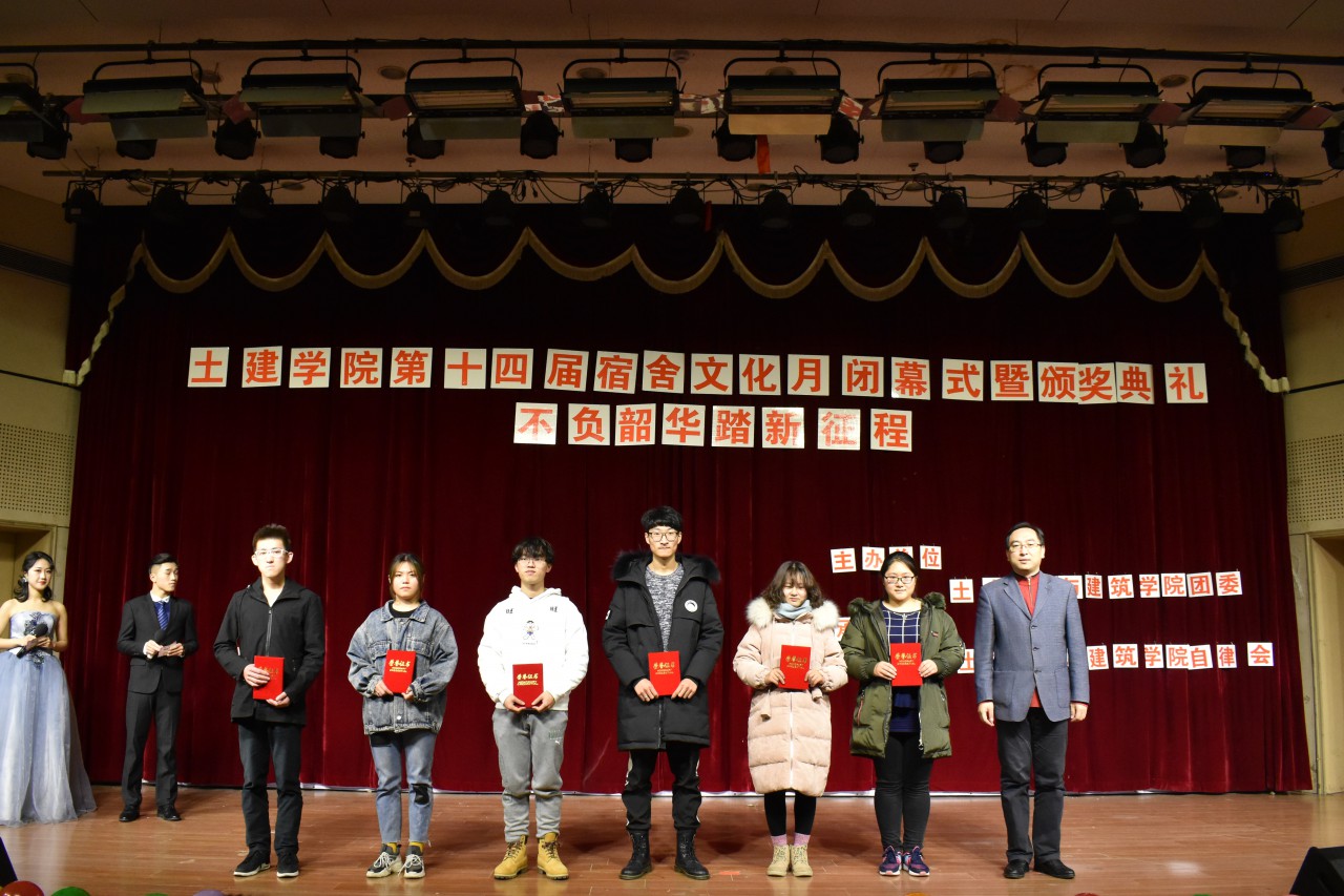 闭幕式上,首先通过观看视频展示了院自律会日常工作的内容、宿舍文化月的活动成果;之后歌舞表演《咖喱咖喱》、吉他弹唱《光辉岁月》等展示了“舍歌大赛”获奖作品,“叠军被大赛”获奖者再次呈现了蒙眼叠军被的整个过程,现场表演环节赢得同学们的一阵阵热烈掌声;最后,参加活动的领导老师为获奖宿舍代表以及获得“文明宿舍”称号的宿舍代表颁发了证书,鼓励他们再接再厉,以身示范。
