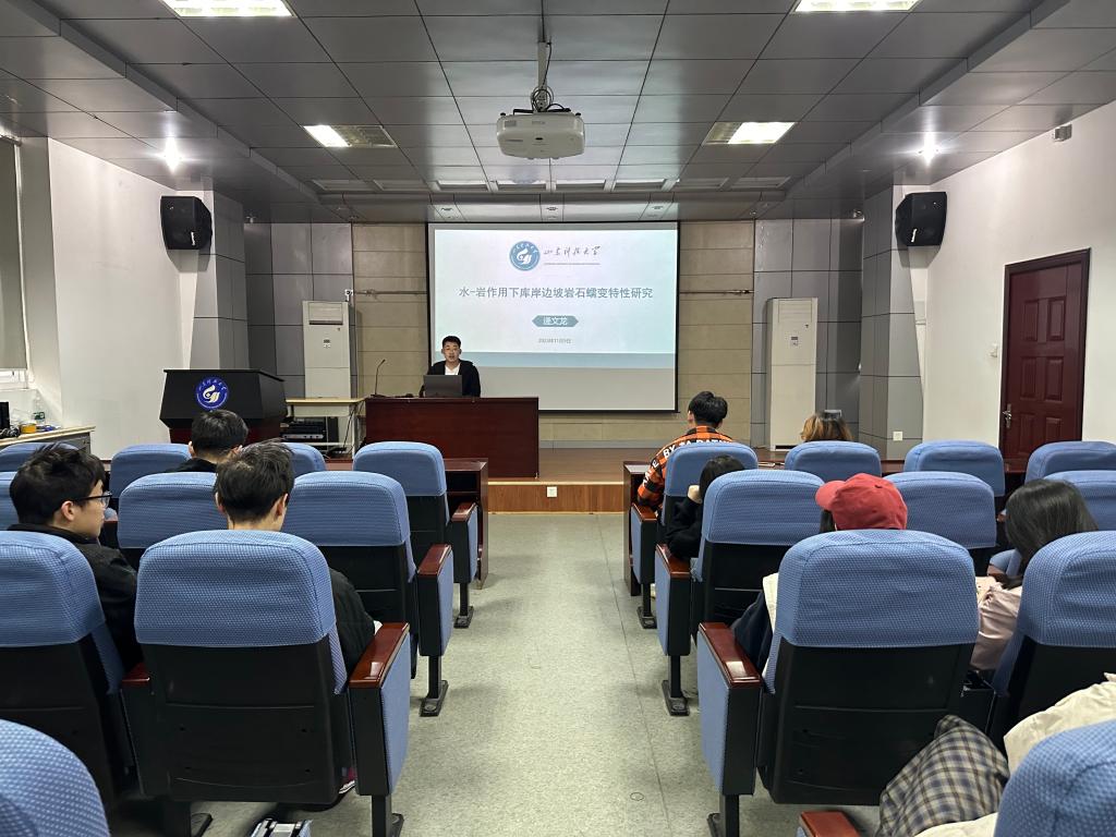 11月9日,由williamhill官方网站校研究生会学术科技部主办,williamhill英国威廉希尔研究生会承办的第一百二十九期微沙龙研究生讲坛在J15-219教室举办。由硕研2022级2班逄文龙主讲,主题为“水-岩作用下库岸边坡岩石蠕变特性研究”。此次讲座为广大研究生们带来了一场精彩的学术盛宴。