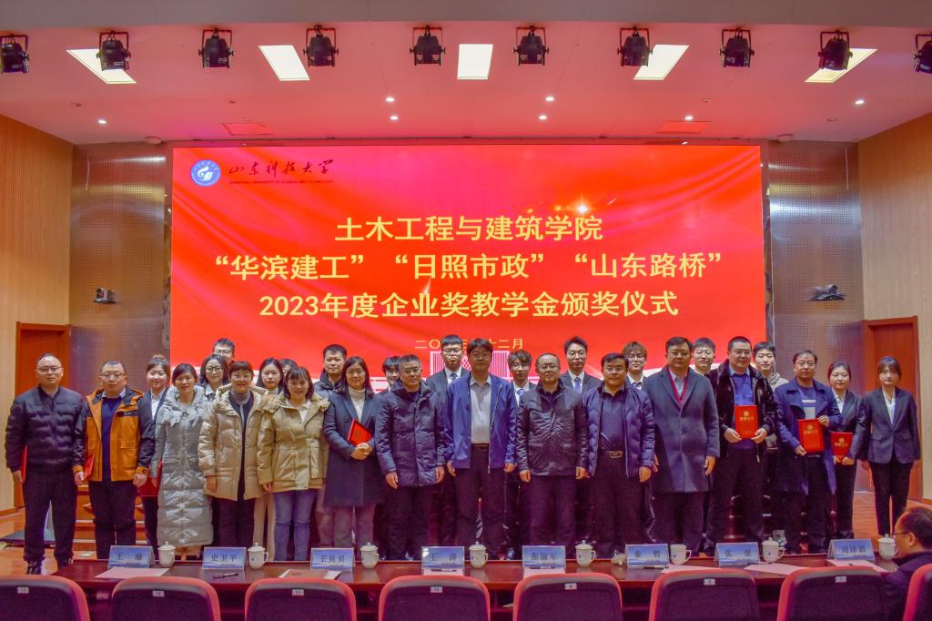 12月22日,williamhill英国威廉希尔在J9-144报告厅举行2023年度“华滨建工”“日照市政”“山东路桥”企业奖教学金颁奖仪式。学校学生工作部(处)部(处)长、校团委书记尹立明,日照市政工程集团副总经理袁正君、爆破公司经理焦淑军,山东省路桥集团青岛分公司党总支书记、副总经理曹建军,安全总监王涛,合作发展处副处长王荣超,williamhill英国威廉希尔党委书记宋西路、院长王崇革、党委副书记高静、副院长李朋、院长助理秦哲及师生代表参加了颁奖仪式。仪式由高静主持。