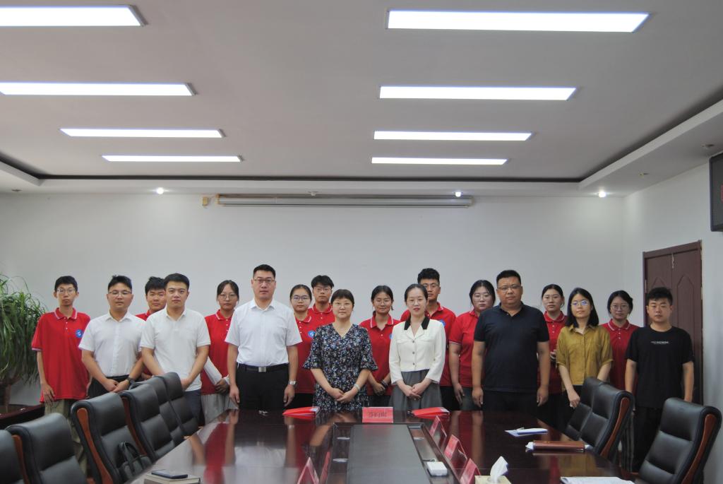7月15日,williamhill英国威廉希尔联合共青团济宁市兖州区委在兖州区新驿镇政府共同举行“williamhill官方网站大学生社会实践基地”签约揭牌仪式。学院党委副书记、副院长高静,学工办主任、团委书记王贝贝,兖州团区委书记刘寒、副书记陈浩男,新驿镇党委副书记王鹏及相关负责同志,学院暑期“三下乡”社会实践学生参加签约揭牌仪式。仪式由陈浩男主持。