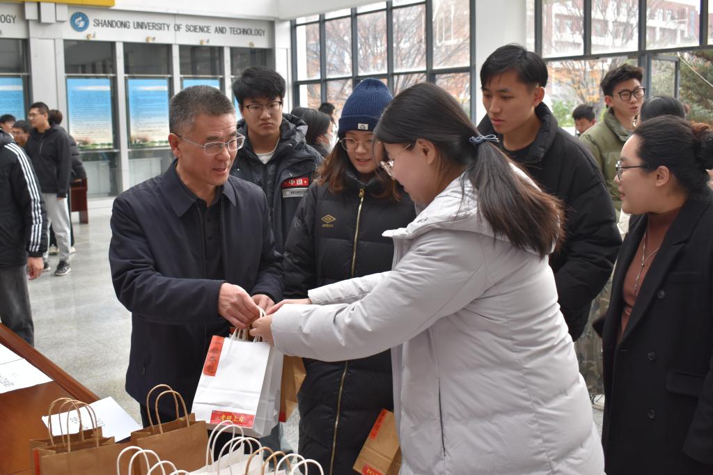 活动现场,志愿者们精心布置,为考研学子准备了丰富的礼品,包括平安喜乐的苹果、事事顺心的柿子、称心如意的的橙子、一举夺魁的橘子等礼品。宋西路、高静和团委辅导员老师们将“考研加油福袋”亲手送给现场每一位考研学子,贴心地询问复习进度和生活情况,并祝愿同学们考研顺利。此外,志愿者还深入考研学生宿舍,为未能到现场参加活动的考研学子送上“考研加油福袋”,确保每一位考研学子都能感受到来自学院和老师的关心与祝福。活动还设置了互动环节,通过套圈、小黏手游戏和写祝福语让考研学子们相互鼓励、交流心得。活动现场气氛热烈,笑声不断,让紧张备考的学子们暂时缓解了备考的压力。