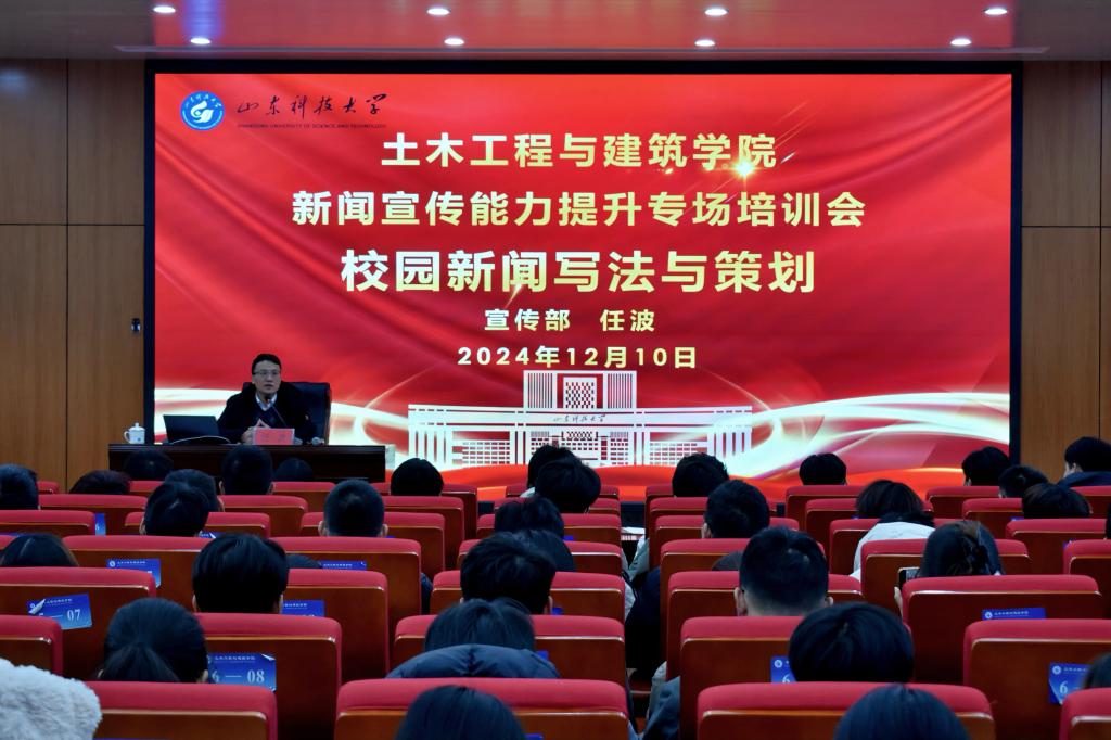 为切实提高威廉希尔官网新闻宣传工作队伍的业务能力,不断提升学院新闻宣传工作的质量和水平,williamhill英国威廉希尔于12月10日在J15-136报告厅举办新闻宣传能力提升专场培训会。本次培训会邀请到校党委宣传部任波老师主讲,学院新闻宣传中心成员及各班级宣传委员参加此次培训会,培训会由学生工作办公室主任、团委书记王贝贝主持。