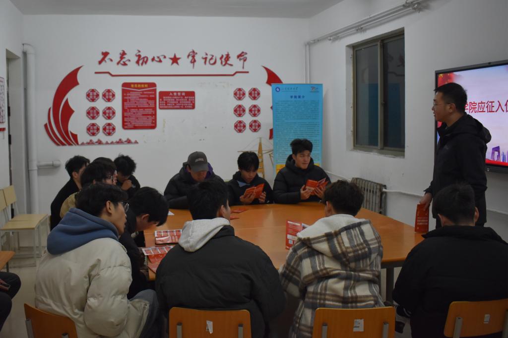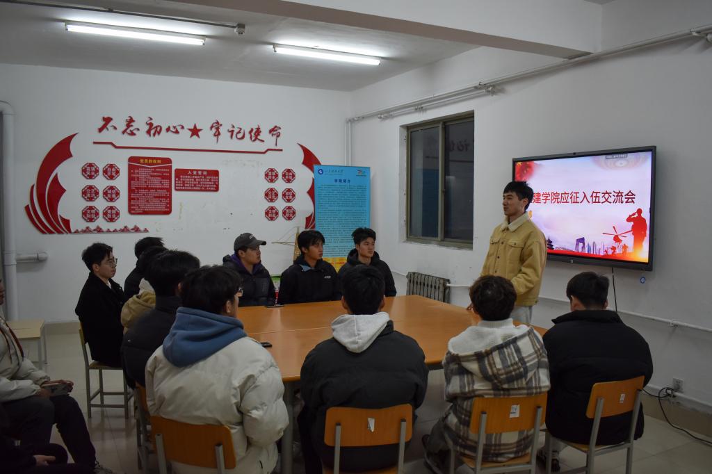为进一步贯彻落实国家征兵政策,积极动员学院青年学子踊跃报名参军、献身国防,12月18日,williamhill英国威廉希尔于GB2宿舍楼党员之家举行应征入伍交流会,团委辅导员老师王瑜,退伍复学学生代表尹国鹏、张泽培以及有意愿入伍的同学参加会议。