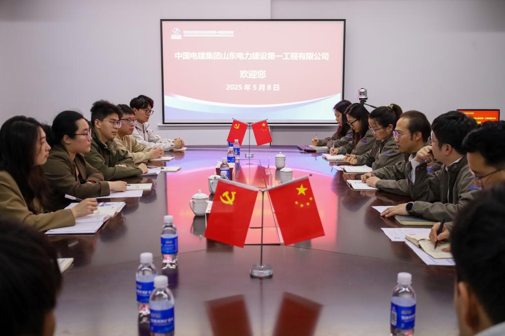 在山东电建一公司,公司代表周峰、胡洋、李桂姣、刘修飞热情地接待了师生一行。他们全方位地介绍了公司的发展历程、组织架构、业务范围以及取得的辉煌业绩,并结合自身多年的工作经验,分享了宝贵的工作方法和心得。他们鼓励同学们在校期间扎实学好专业知识,培养良好的团队协作能力和问题解决能力,为未来的职业发展打下坚实的基础。在互动环节,同学们积极提问,就自己关心的职业发展路径、企业人才需求等问题与公司代表进行了深入交流,现场气氛热烈。