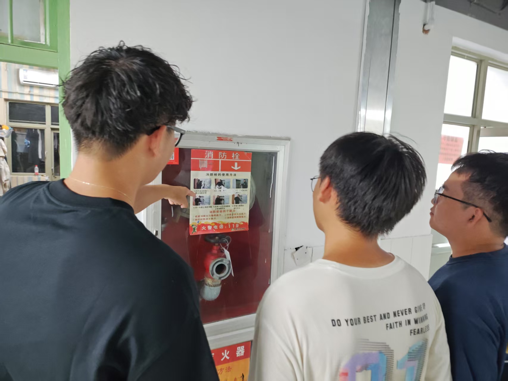 活动以“宣传-教育-实践”为主线,打造三大核心环节。在“筑牢消防防线”演练中,同学们实地排查校园消防安全举措并拍照记录,现场模拟火灾场景,学习灭火器、消火栓等器材的规范使用方法,同时通过“消防知识问答”强化理论认知;“预防溺水”主题活动以案例剖析溺水危害,配合情景模拟让学生体验救援流程,掌握自救互救技巧;“雨季防汛”科普环节则通过知识讲座、展览及应急避险演练,教授同学们在暴雨内涝等极端天气下的避险方法,提升应对自然灾害的能力。