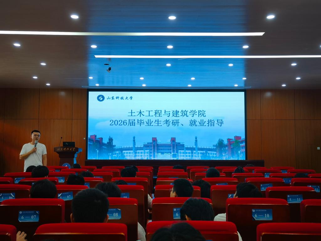 地下工程系教师朱庆文结合自身经历,分享了升学与就业的实战经验。他指出,作为国计民生与国家安全的基石,土木工程在城市更新方面、地下空间开发、韧性城市建设等新赛道方兴未艾,攻读研究生不仅能深化专业素养,更是接触智能建造、绿色建筑等前沿领域的绝佳机会。针对考研他提出“科学择校、系统复习、心态调整"三大策略,建议同学们注重专业基础与前沿知识的结合,将考研视为提升自我的过程而非单纯应试。