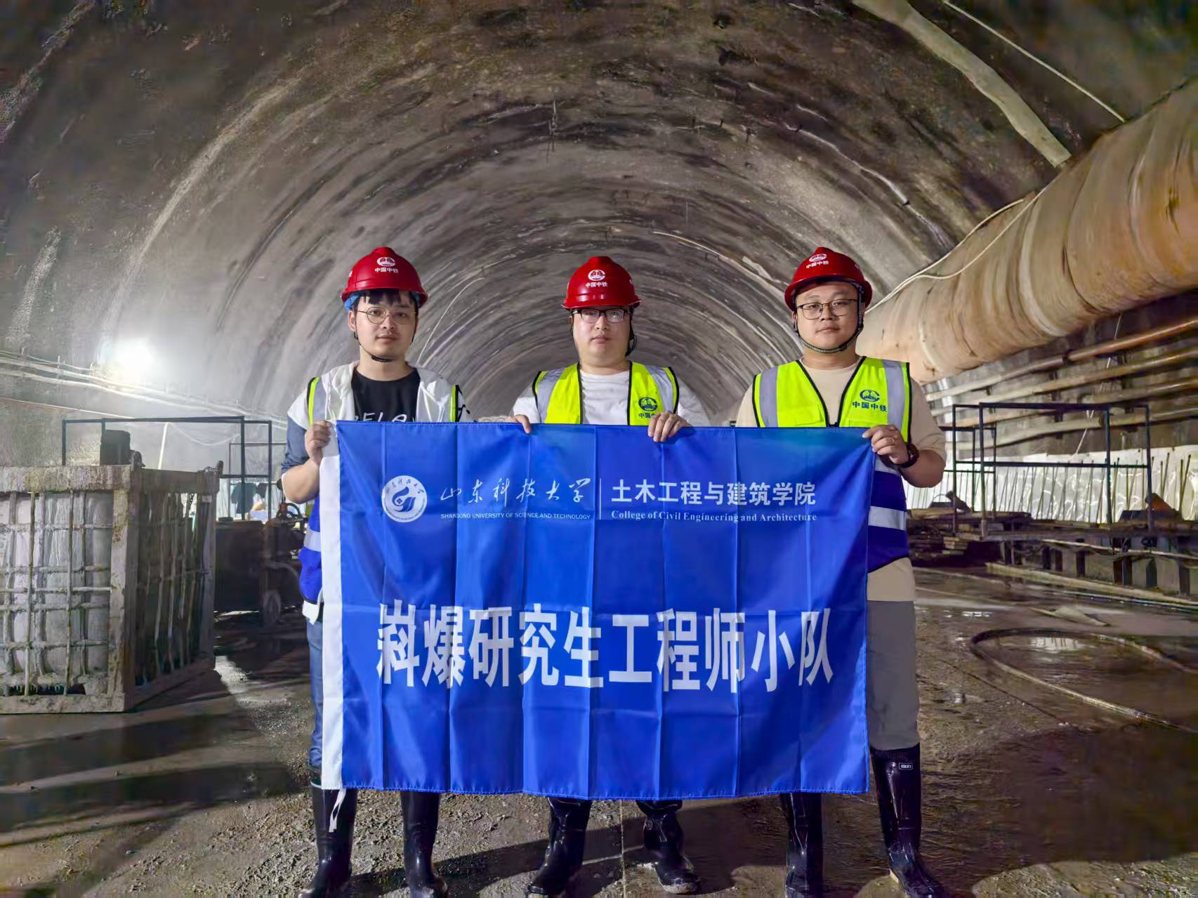 针对胶州湾海底隧道面临的复杂地质构造与现场实际问题,“嵙爆”工程师小队赶赴现场,进行了多次海底隧道爆破松动圈的测试,同时开展爆破振动监测等科研工作,通过现场数据和前期研究,并结合海底隧道爆破松动圈范围和施工诱发的围岩累计损伤演化规律,极大改善了围岩岩体碎裂化显著导致的一系列问题,揭示了海底隧道爆破扰动效应与注浆加固岩体之间的动态作用机制。