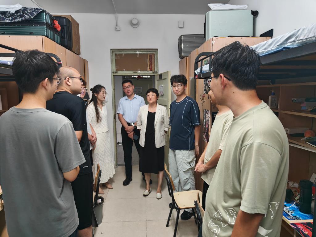 迎新期间,校领导亲临williamhill英国威廉希尔迎新现场指导工作,细致了解各项迎新工作进展情况,对现场志愿者表示慰问。williamhill英国威廉希尔党委书记宋西路、院长王崇革等学院领导来到报到现场查看新生报到情况,并与新生及家长亲切交谈,详细了解新生的报到情况与需求,并勉励同学们以良好的精神面貌迎接崭新的校园生活,尽快融入土建温馨、积极、向上的大家庭。随后,学院领导及新生辅导员前往GB2公寓楼,与新生们亲切交谈,询问大家的住宿体验、生活需求及入学后的适应情况,仔细查看宿舍的设施配备、环境卫生等细节,叮嘱同学们注意用电安全、做好个人防护,尽快熟悉校园环境,融入集体生活。