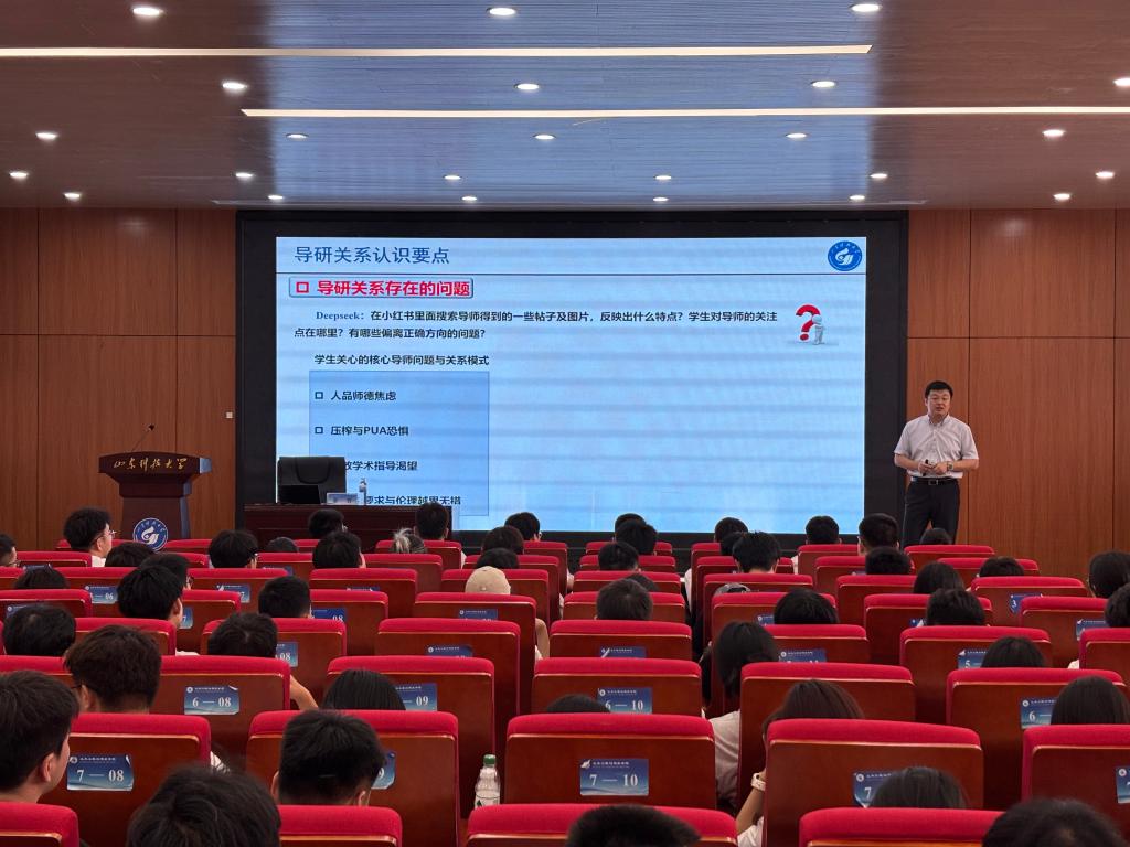 学院副院长李为腾以《学科专业与学术道德》为题,向同学们介绍了学院的学科发展历程、平台构建以及高校阅读科研论文的方法,他强调,科学研究要坚持以诚实守信为基础、以追求真理为核心的理念,要恪守学术诚信,珍视学术声誉,将“求真务实、严谨创新”的科学精神内化于心、外化于行。