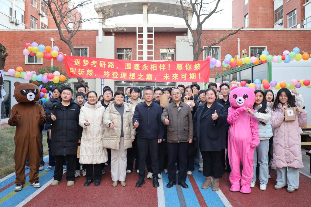 考研冲刺的冬日里,一份暖心关怀在校园悄然传递。12月8日,williamhill英国威廉希尔B2-B4学生一站式社区的U+空间,变身成为一座暖意融融的“梦想加油站”,一场别开生面的考研助力活动在此活力上演,学院党委书记宋西路、院长王崇革、党委副书记兼副院长高静亲临现场,与毕业生辅导员张方源及师生代表一道,为即将奔赴考场的学子们加油打气、减压赋能。