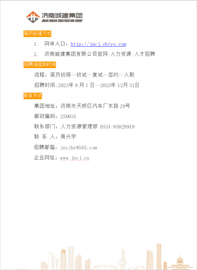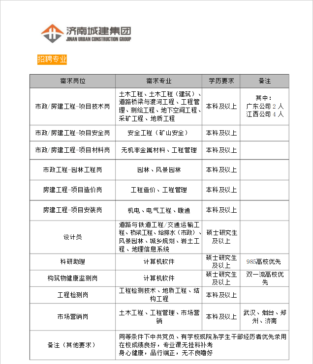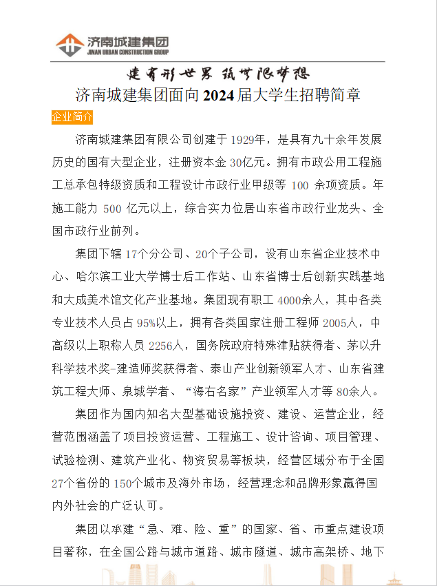 招聘信息(045)济南城建集团有限公司