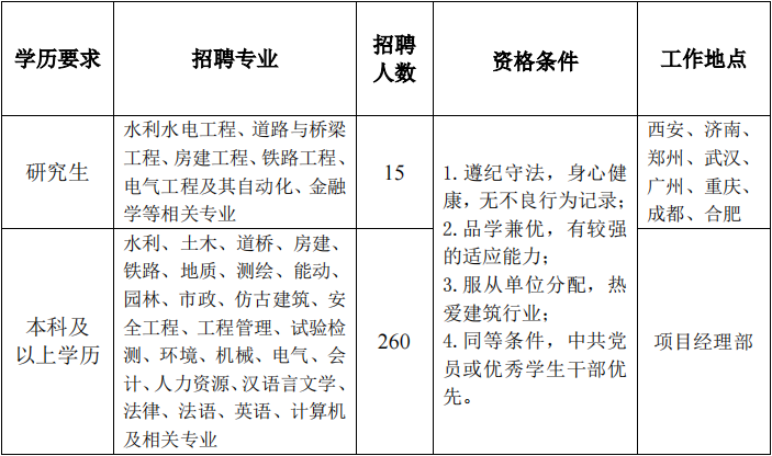 2.福利:六险两金(养老、医疗、工伤、失业、生育、大病医疗、住房公积金、企业年金),取暖费、降温费、区域补贴、伙食补贴、通讯补贴、野外施工津贴、安全岗位津贴、劳保费用、学历提升补贴、注册执业资格证补贴等各项津补贴,定期体检,各类培训,年休假、婚丧假、产假、陪护假、冬休假等各类假期。
