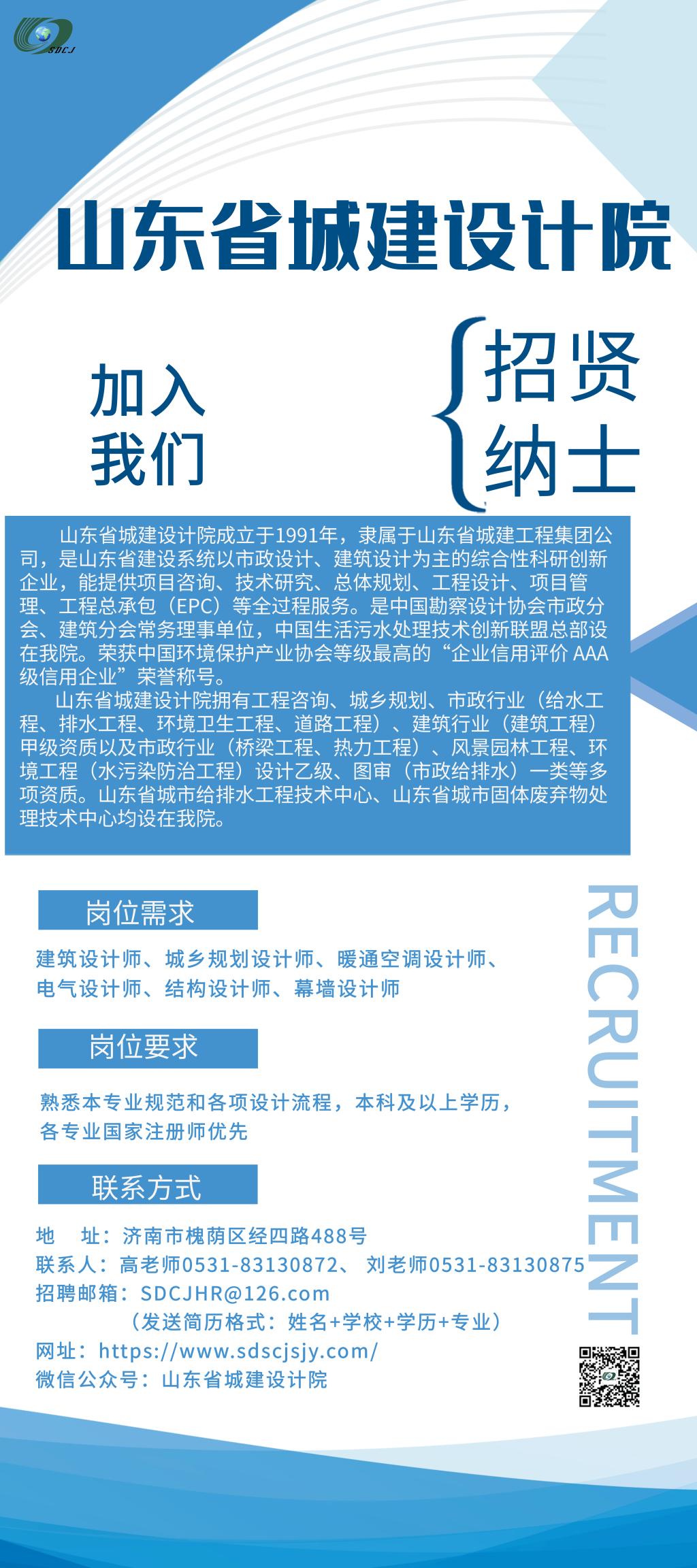 招聘信息(041)山东省城建设计院