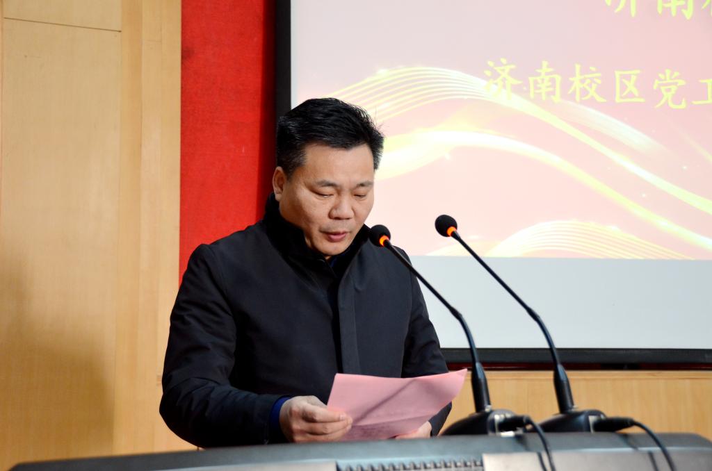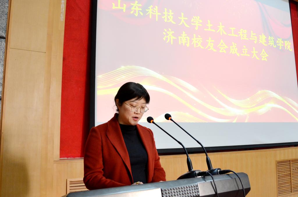 单德勇向大会汇报校友会筹备情况 济南校区党工委副书记贾长响宣读《williamhill英国威廉希尔济南校友会章程》