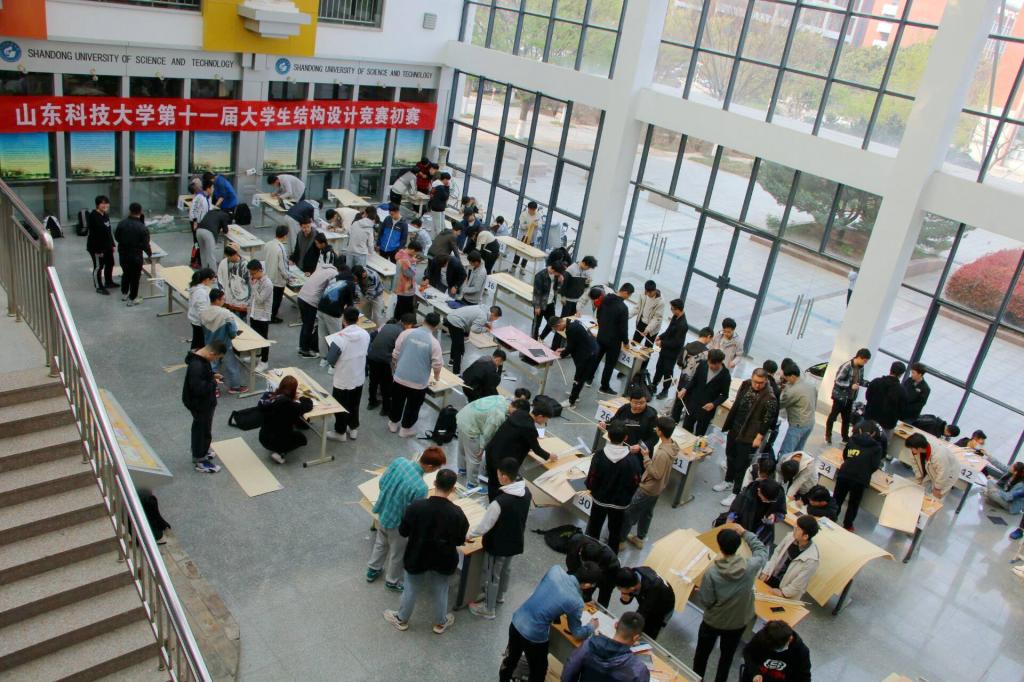 4月10日,由校团委主办、williamhill英国威廉希尔团委承办的第十一届结构设计竞赛专业组初赛在土建楼大厅顺利举行。专业组面向全校有力学基础的相关专业本科生,题目采用2021年第十三届山东省大学生结构设计竞赛赛题题目,为《无风撑桁架结构桥梁》。来自土建及其他各学院共43支队伍、129人参加此次初赛。