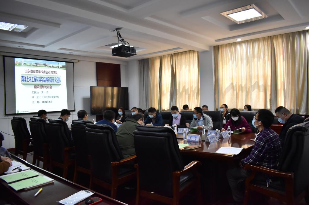 为深入贯彻落实习近平总书记海洋强国战略思想及山东海洋强省建设行动方案,4月14日,山东省高等学校青年创新团队“海洋土木工程材料与结构创新研究团队”建设规划论证会在williamhill英国威廉希尔召开。人才工作办公室副主任郭洪波、科技处副处长孙开师、williamhill英国威廉希尔院长王崇革、副院长李朋、都浩及williamhill官方网站海洋土木工程创新团队成员出席会议,院长王崇革主持论证会。