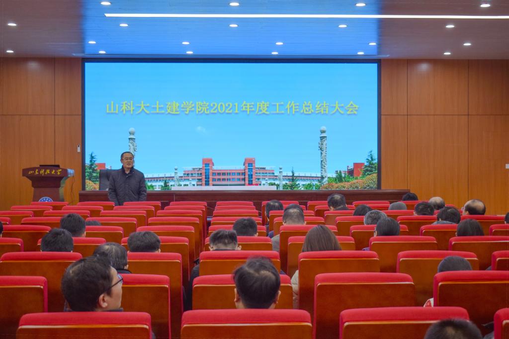 会上,王崇革全面回顾了学院在党建与思想政治、本科教学与专业建设、学科建设与研究生培养、科学研究与实验室建设、师资队伍建设、社会服务与校友工作、学团工作等方面所取得的突出成绩,总体上实现了“十四五”开好局、起好步的预期目标;向全体教职工公布了2021年度学院各项经费分配使用情况;并对年度考核、聘期考核进行了政策解读,向全体教职工传达了学校2021年绩效工资分配会议精神及学院2021年绩效工资实施办法。
