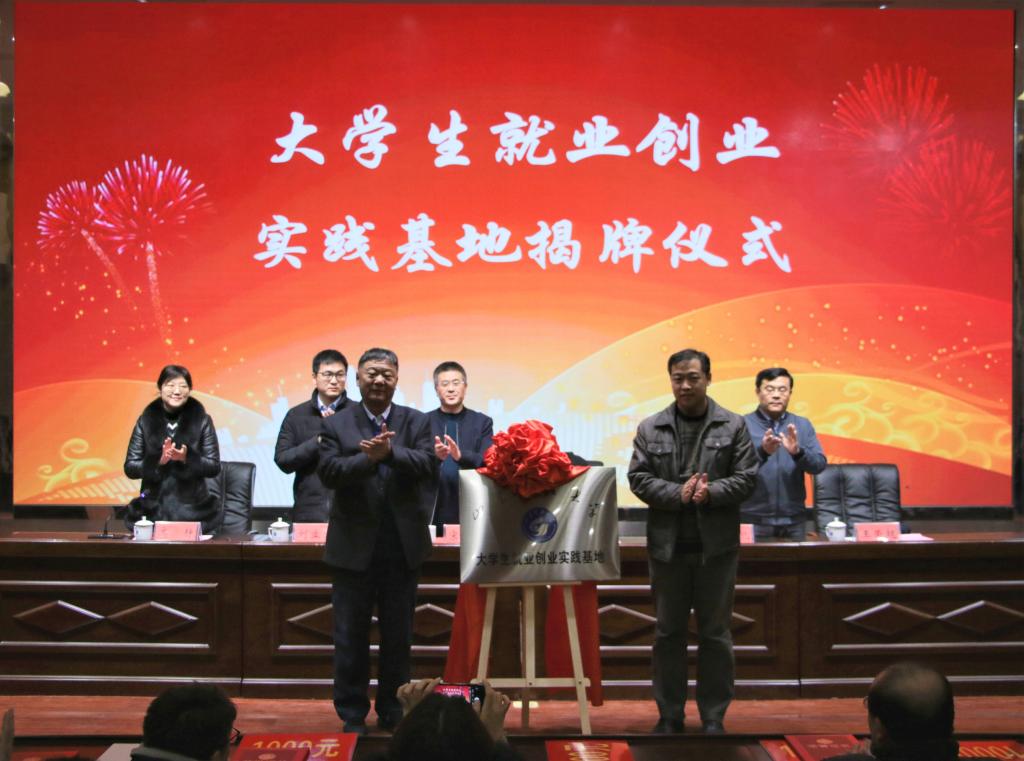 随后,靳凯与李志连共同为大学生就业创业实践基地揭牌。