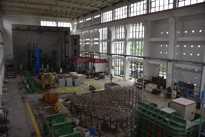 经过多年的经费投入和建设,实验中心现有实验用房面积3830m2,设备总数达2300余台件,实验仪器设备总额3600余万元。其中,结构实验大厅建筑面积1444.6 m2,设有地锚地面的箱型地下结构和L型空腹结构的双向反力墙,配有桥式50/5t吊车起重装置,100t和50t的水平加载系统,500t的长柱实验机和100t的万能试验机等。另外,建设有建筑物理、材料力学、岩石力学、土力学、结构工程、岩土工程、土木工程材料、道路与桥梁工程、爆破工程、建筑环境、暖通设备、数值模拟、虚拟仿真等20余个功能实验室,为目前山东省最大、最先进的岩土与结构实验中心之一。