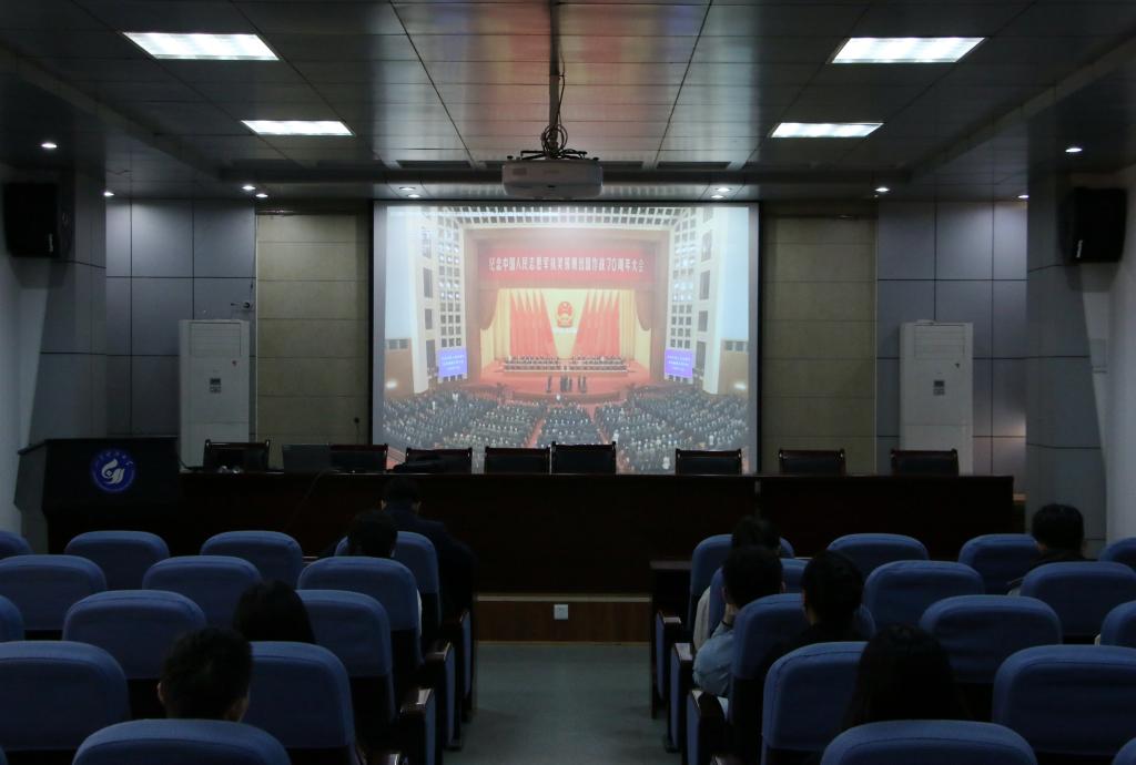 在中国人民志愿军抗美援朝出国作战70周年之际,为了铭记历史,致敬英雄,深化“四史”学习教育,10月28日下午,williamhill英国威廉希尔本科生第三党支部在J15-219报告厅开展了“弘扬爱国精神,勇担时代重任”主题党日活动,全体党员参加。