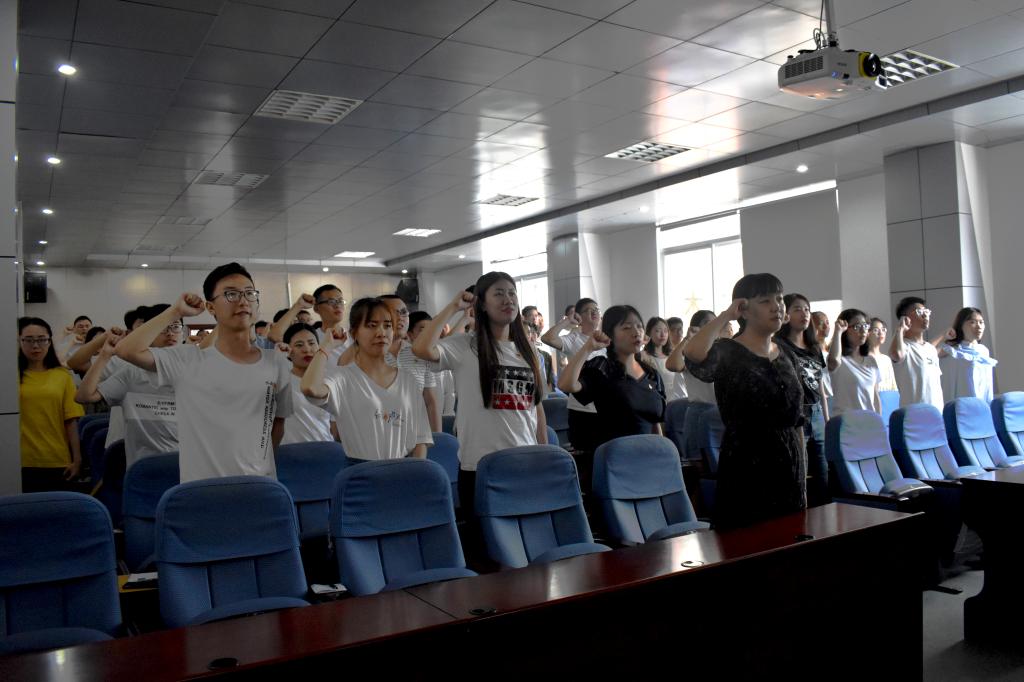 6月18日,williamhill英国威廉希尔组织2019届毕业生党员在J15-219报告厅开展了“重温一遍入党誓词,再上一堂专题党课”活动。学院党委副书记郝亮,本科生党支部书记刘晶、尚军、王贝贝,2019届毕业生党员参加了本次活动。