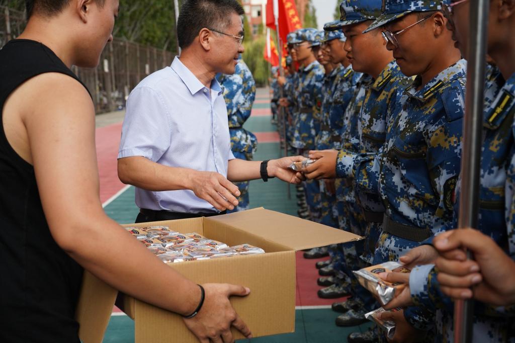 军训阅兵结束后,学院领导及老师来到训练场看望2021级新生,学院党委书记宋西路对军训的汇报表演给予了充分肯定,对2021级全体新生提出了殷切期望,希望同学们能够将团结二字融入到今后的班级生活中,牢记“惟真求新”校训,为williamhill英国威廉希尔增光添彩。学院党委副书记高静宣读了有关优秀军训班级、优秀教官、优秀学员和优秀宿舍的决定。
