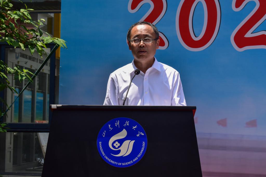 最后,院长王崇革向全体毕业生致辞,他向毕业生们圆满完成学业表示衷心的祝贺,向一路呵护同学们成长成才的老师们表示最崇高的敬意。临行之际,他赠言毕业生:一是志存高远,希望同学们立鸿鹄伟志、守报国丹心,让理想与伟大时代同向同行,把自己的小我融入祖国的大我、人民的大我之中;二是崇善明德,希望同学们用人格赢得成功路上的机遇良缘,要知感恩、懂宽容、会分享,严以律己,宽以待人。让诚实、正直、厚道、守信的优秀品质与同学们朝夕相处;三是笃行不怠,希望同学们在走出校门后,依然保持读书和研究的习惯,追知识之“光”,求真理之“是”,把阅读思考作为生活方式,让终身学习成为自觉追求。他祝愿毕业生们在自己的担当和奋斗中,把握人生的际遇和机缘,勇敢地追求属于自己的诗和远方,成就奋斗的人生、幸福的人生、卓越的人生。