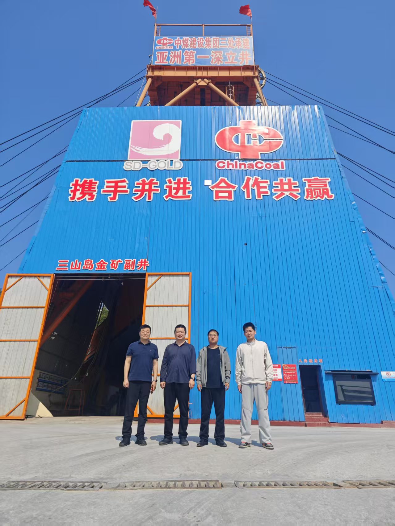 在项目现场,秦哲一行与三山岛金矿总工程师何顺斌、党支部书记李威、工程项目部经理况丹阳等人围绕立井施工中的关键技术难题、深井围岩控制及重大灾害防控等核心议题进行了深入交流。秦哲指出,学院将充分发挥科研与人才优势,持续聚焦深地科学技术研究,为“亚洲第一深立井”的安全高效建设提供坚实支撑。何顺斌总工对学院及山晖团队长期以来的科研支持表示感谢,并重点介绍了超深副井及盲服务井在建设过程中,面对复杂地质、高地温、高地压等世界级挑战所取得的一系列重大技术突破。工程项目部经理况丹阳表示,三山岛金矿将与williamhill官方网站持续深化在超深竖井建设与安全运营领域的合作。