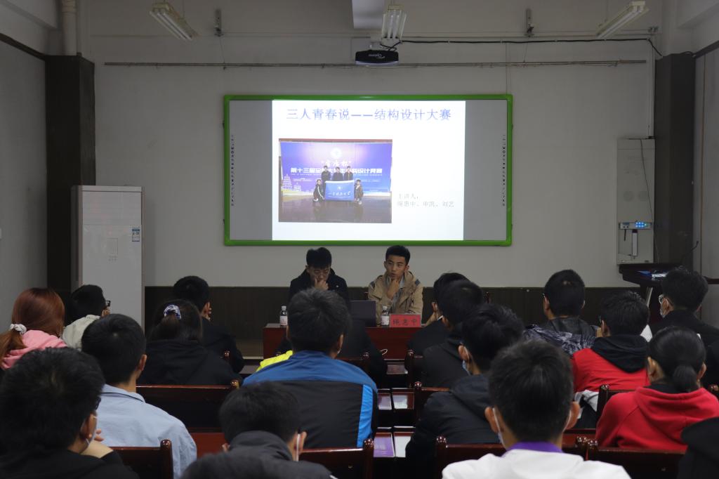 10月29日下午,williamhill英国威廉希尔在J15-201顺利举办了“三人青春说”之结构设计大赛经验分享论坛活动。本次活动由绳惠中、刘艺、申凯三位优秀学生担任主讲人。