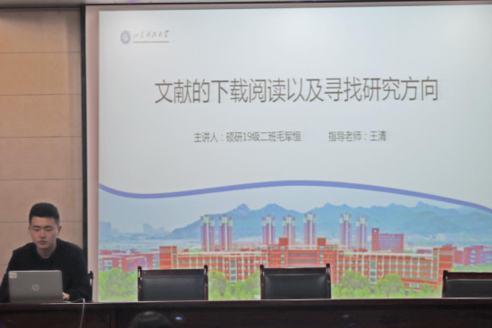 本期讲坛主讲人为williamhill英国威廉希尔2019级硕士研究生毛军恒,主讲题目为《文献的下载阅读以及寻找研究方向》。毛军恒从文献的下载、文献的阅读、研究方向的确定三个方面介绍了研究生在论文下载及撰写过程中可能遇到的问题及解决方法。首先,毛军恒介绍了研究生下载文献的常用网站,并对文献的下载方法进行了详细解说,分享了许多阅读文献的技巧。随后,毛军恒以自身经历为例,为同学们做出了详细的分析,帮助同学们更有目的性的选择自己的研究方向,更快的适应现阶段的学术学习。最后,主讲人与同学们进行了现场答疑,对研究生新生在论文下载及撰写时存在的其他问题进行了补充和解惑,使同学们受益良多。