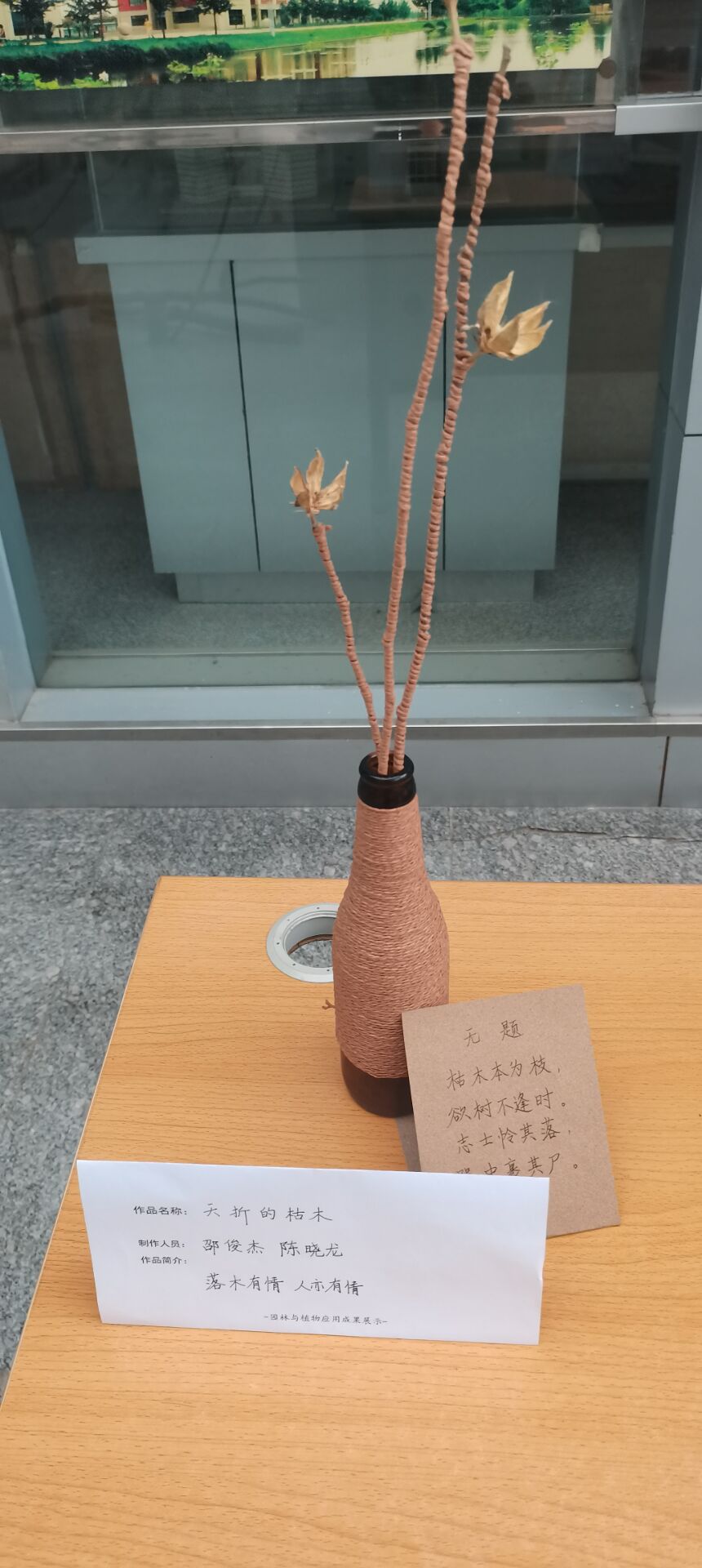 1月4日下午,williamhill英国威廉希尔建筑学专业在土建楼大厅举办园林与植物应用作品展览活动,展览主题为“玩转枯木”,建筑学部分学生积极参加。