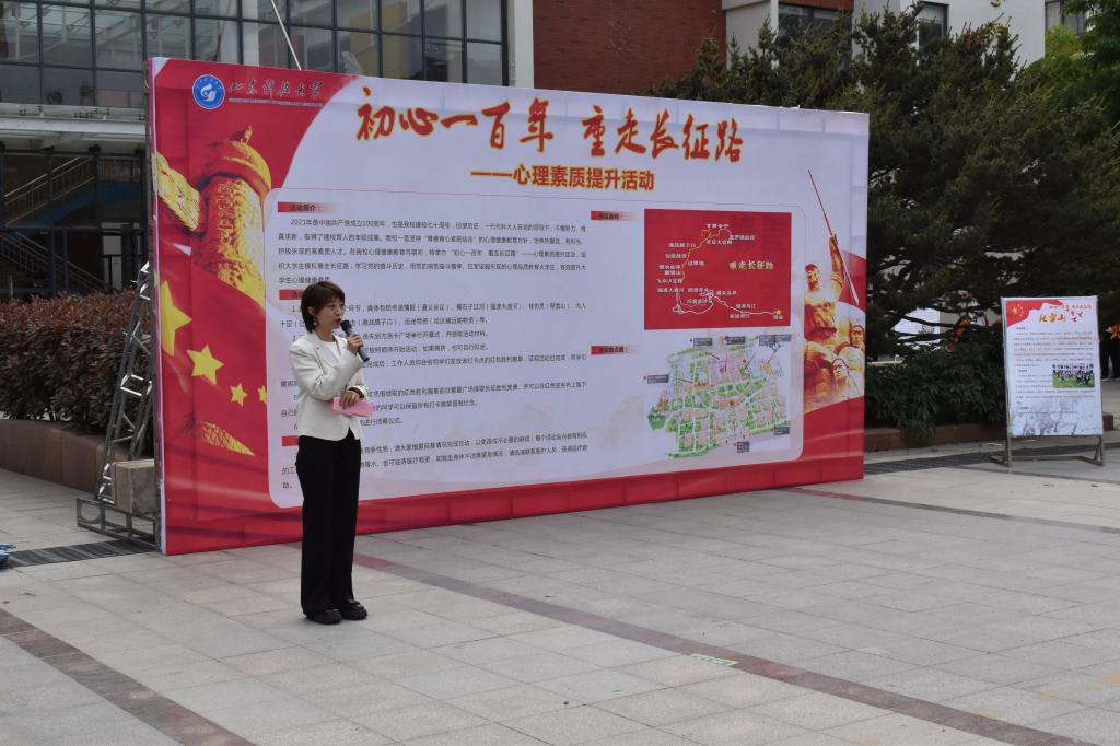 为迎接建党百年华诞,重温百年奋斗史诗,进一步追寻长征记忆,弘扬长征精神,增强学生的自我心理保健意识,5月9日上午,由学生处心理健康中心主办、williamhill英国威廉希尔学工办承办的“初心一百年,重走长征路”心理素质拓展活动在J15西门广场开展,心理健康中心乔杨、能源学院岳淑玲、williamhill英国威廉希尔鲍娜娜及各学院百余名学生参加了本次活动。