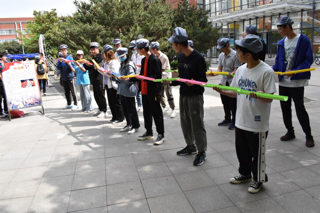 活动开始前,学生处心理健康中心乔杨老师致开幕词,她强调,长征精神是革命先辈为后人留下的最宝贵的精神财富,是中华民族百折不挠、自强不息的民族精神的最高体现,希望同学们不忘初心,继承和发扬伟大的长征精神,争做德智体美劳全面发展的中国特色社会主义事业建设者和可靠接班人。本次活动模拟了红军长征路上不同的“关卡”,按照预先创设的长征路线:从瑞金出发——爬雪山(负重跑步)——过草地(九人十足)——激战腊子口(精准射击)——哈达铺运送物资(乒乓球接力传递)——陕北吴起会师,进行一一体验。每参加完一个活动会获得一枚红色胜利胸章,集齐所有活动章可换取长征胜利奖牌。