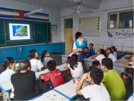 英语课上,孩子们与老师热情互动;微机课上,孩子们开拓视野;手工课上,孩子们认真折花;音乐课上,孩子们快乐歌唱;在体育课上,孩子们激情挥洒……他们的点滴成长,让支教队员们倍感欣慰。除此之外,今天支教队还感受到了当地政府的关怀,苹果,桃子,香蕉……许许多多的水果被搬运到支教队员的办公室,为大家的夏日添上了彩色的一笔。