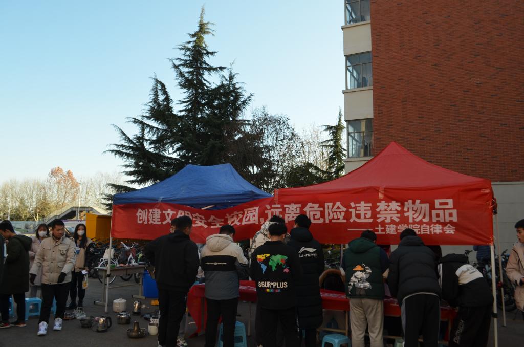 为增强同学们的安全意识,提高同学们对安全防范的认知水平,营造和谐安全的校园环境,11月23日下午,williamhill英国威廉希尔自律会在B2-B4宿舍楼前开展“创建文明安全校园,远离违禁危险物品”安全教育主题活动。学生工作办公室主任朱统汉、辅导员刘超到场进行了细致的指导,传达了学校安全工作精神。